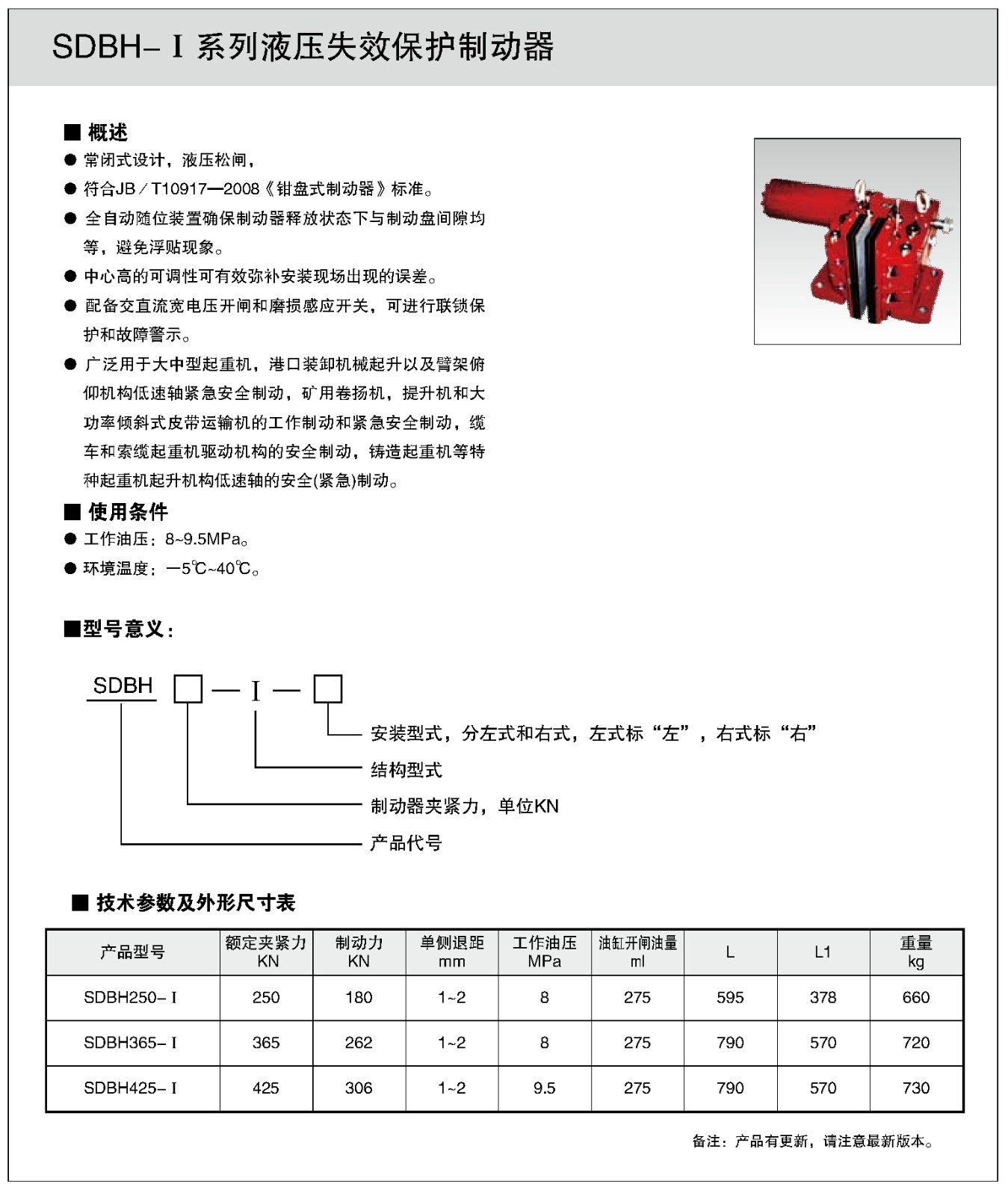 SDBH-I系列液壓失效保護盤式制動器